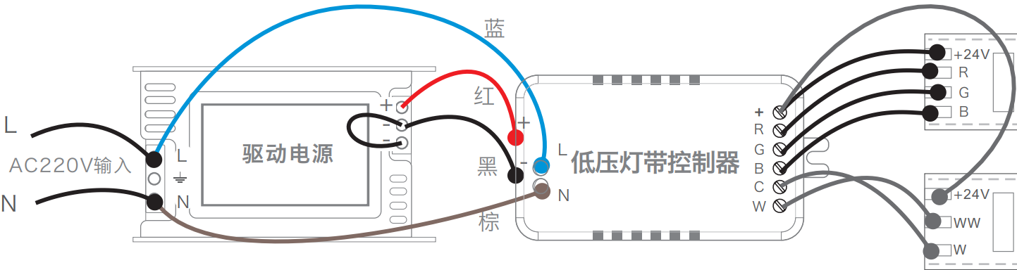 步骤1.低压灯带控制器复位方法:进行通断电10次,灯光闪烁三次,表示复位成功;