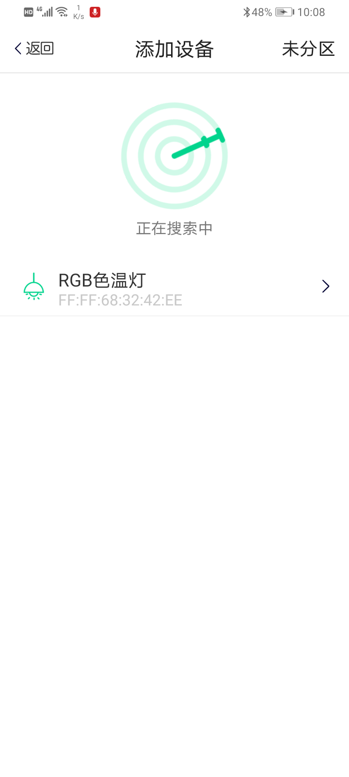 步骤4.扫描到设备后,点击设备名称:RGB色温灯(如果是RGB灯带就会显示RGB灯、色温灯就会显示色温灯),进入设备分区界面;