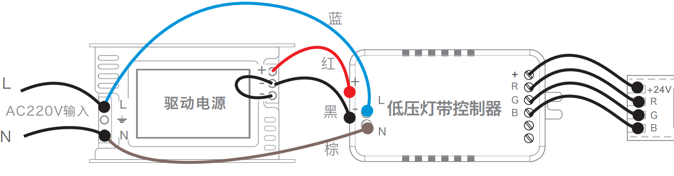 低压RGB色温灯带控制器接线