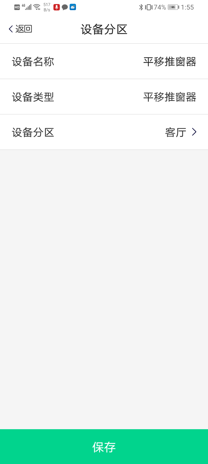 步骤4.扫描到设备后,点击设备名称:平移推窗器,进入设备分区界面;见下图