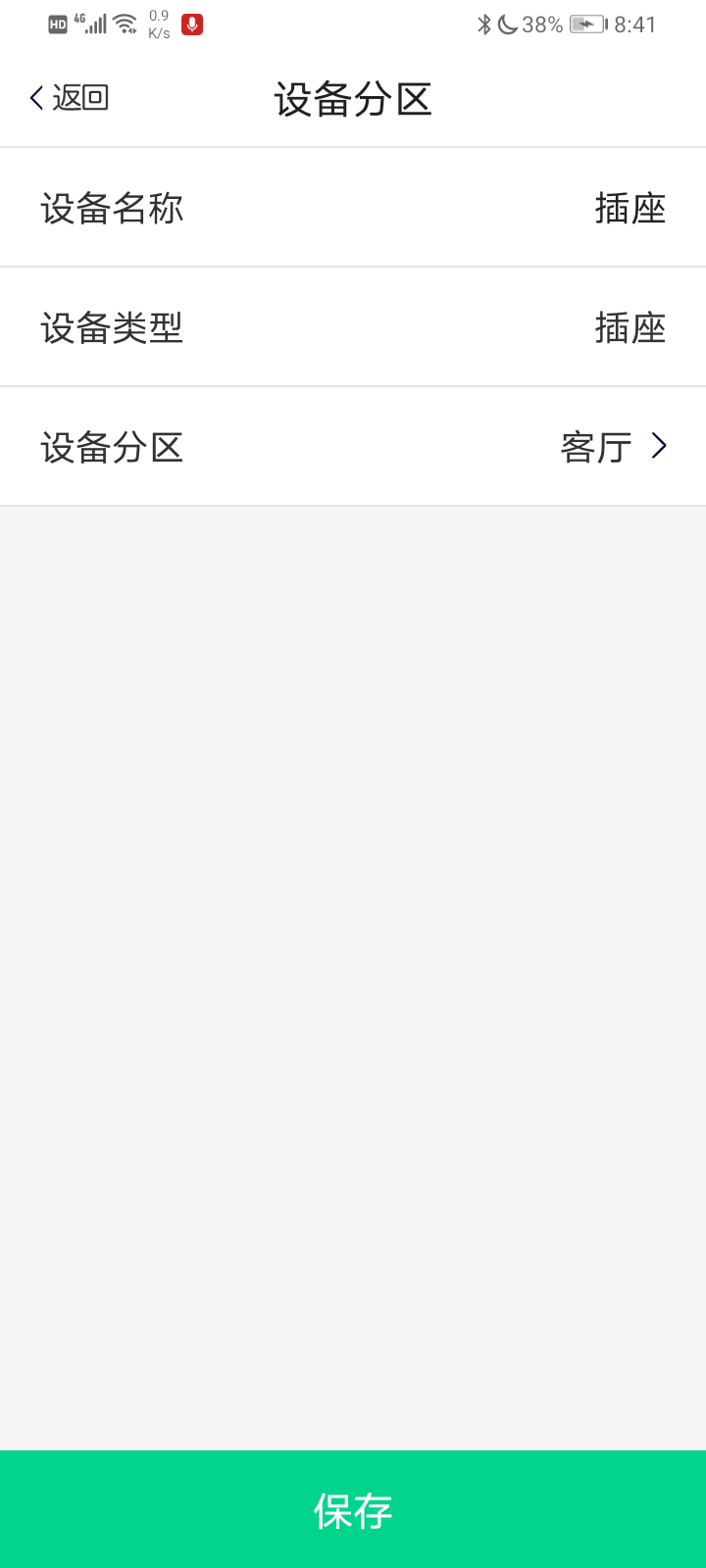 步骤5.在设备分区界面,可对插座命名,选择插座放置的房间,然后点击保存;见下图