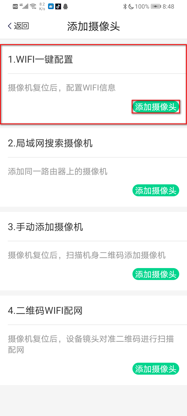 步骤3.进入添加摄像机画面,选择WIFI一键配置。