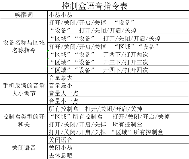 备注:设备代表的是控制盒/窗帘/开关等的名称;区域灯代表的某一个区域,比如客厅、餐厅……
