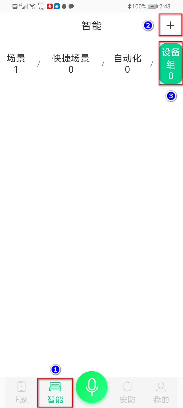 点击下方“智能”-设备组-然后右上角点击“+”进入新建设备组界面;如下图