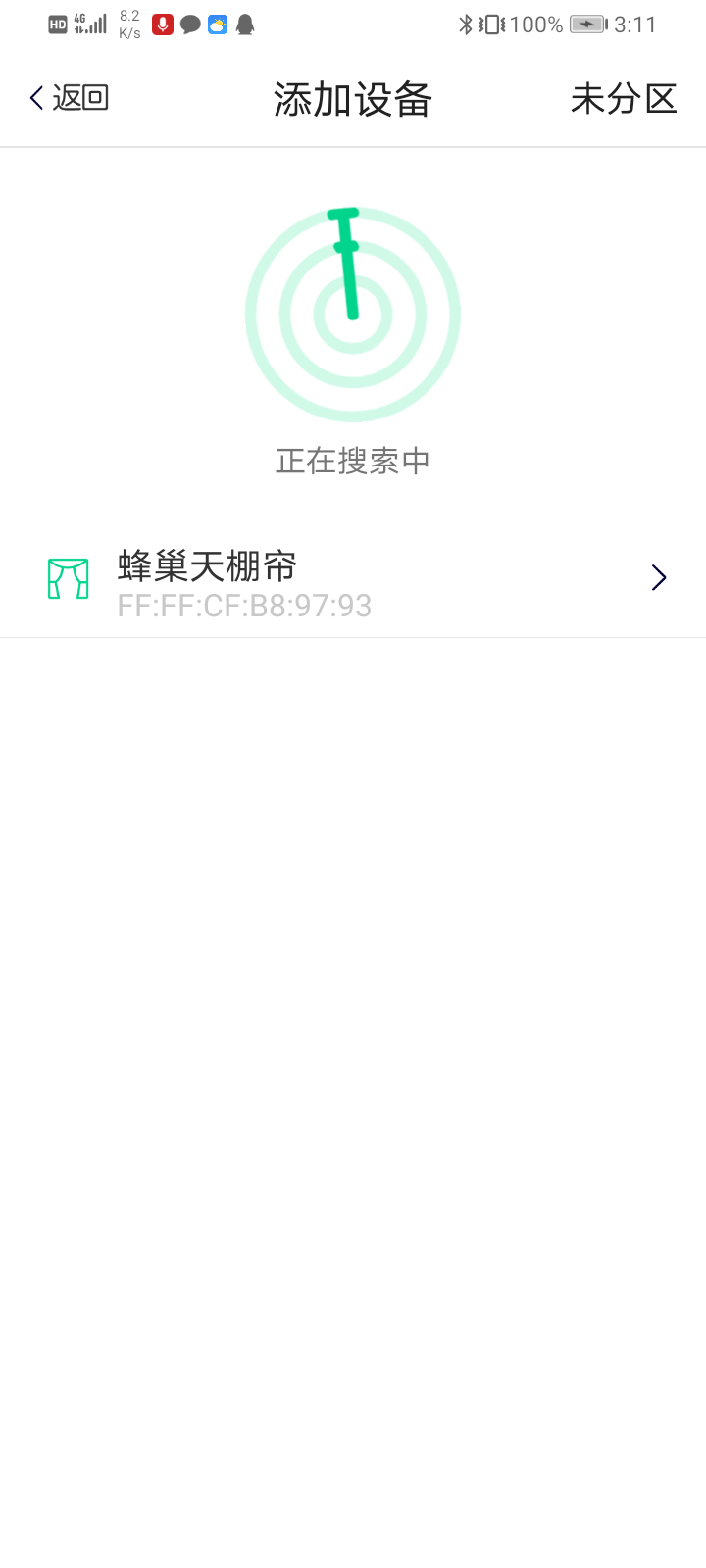 步骤5.扫描到设备后,点击设备名称-蜂巢天棚帘;