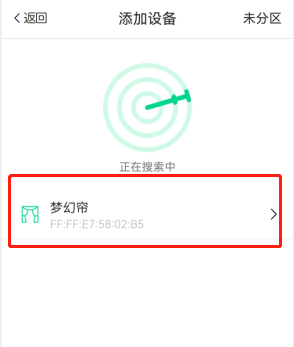 步骤4.扫描到设备后,点击设备名称:梦幻帘,进入设备分区界面;
