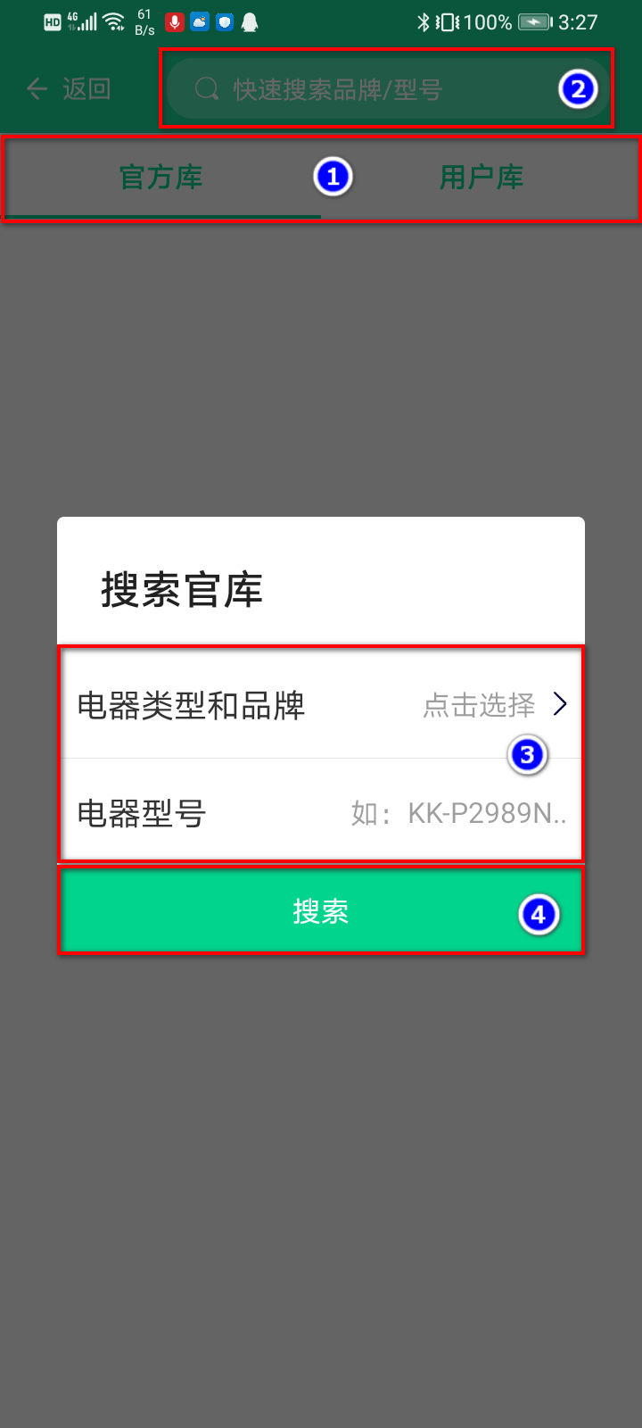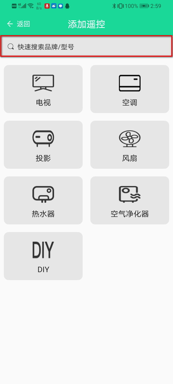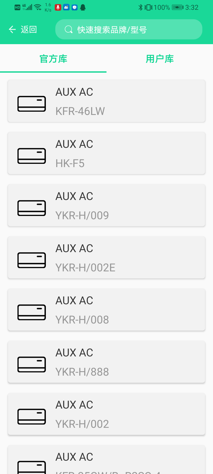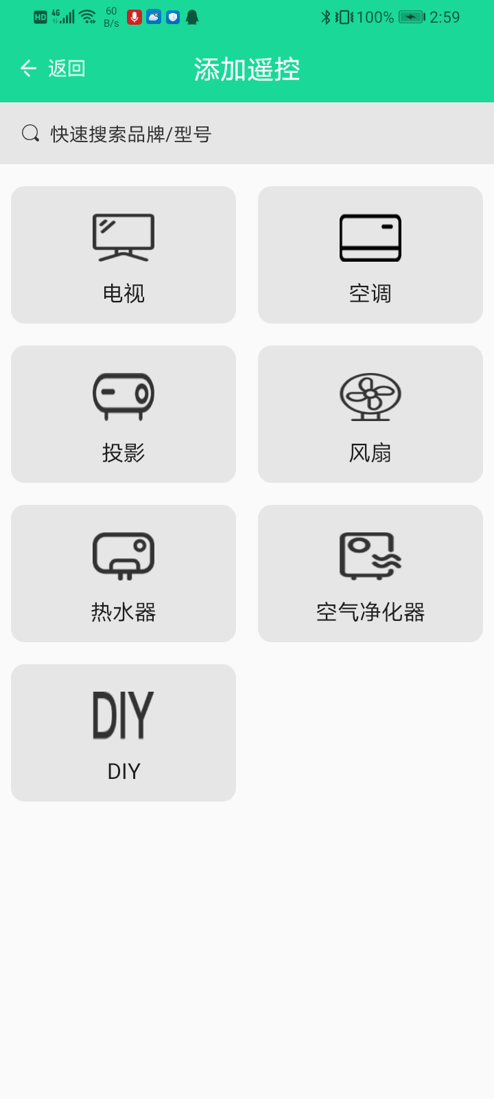 1)点击红外转发宝-添加遥控(图3)-选择对应的红外设备类型(图4)-选择具体的品牌(图5),也可以直接在添加遥控顶部搜索栏中直接输入对应品牌/型号,通过快速搜索查找对应设备;