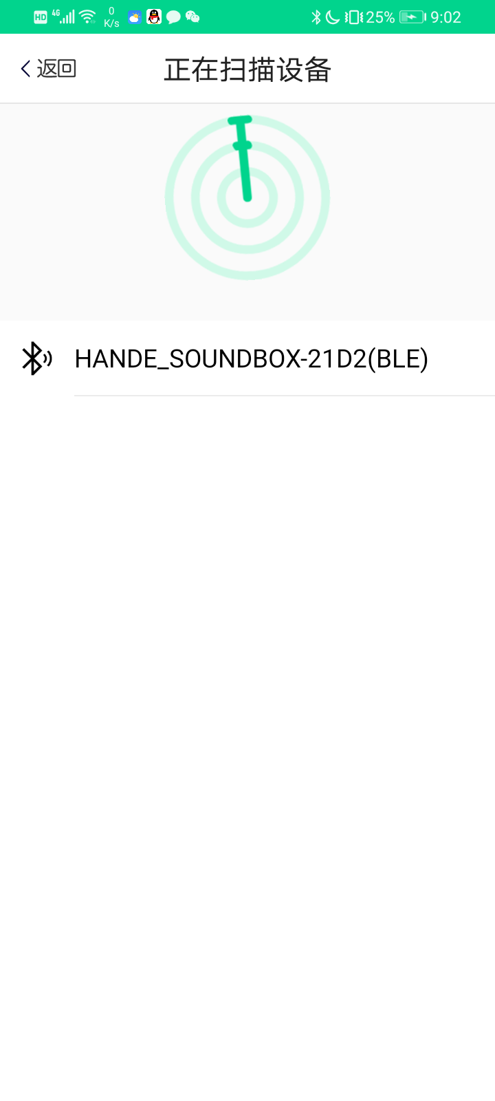 步骤4.扫描到设备后,点击设备名称:HANDE_SOUNDBOX-XXXX(BLE);(XXXX为设备编号)