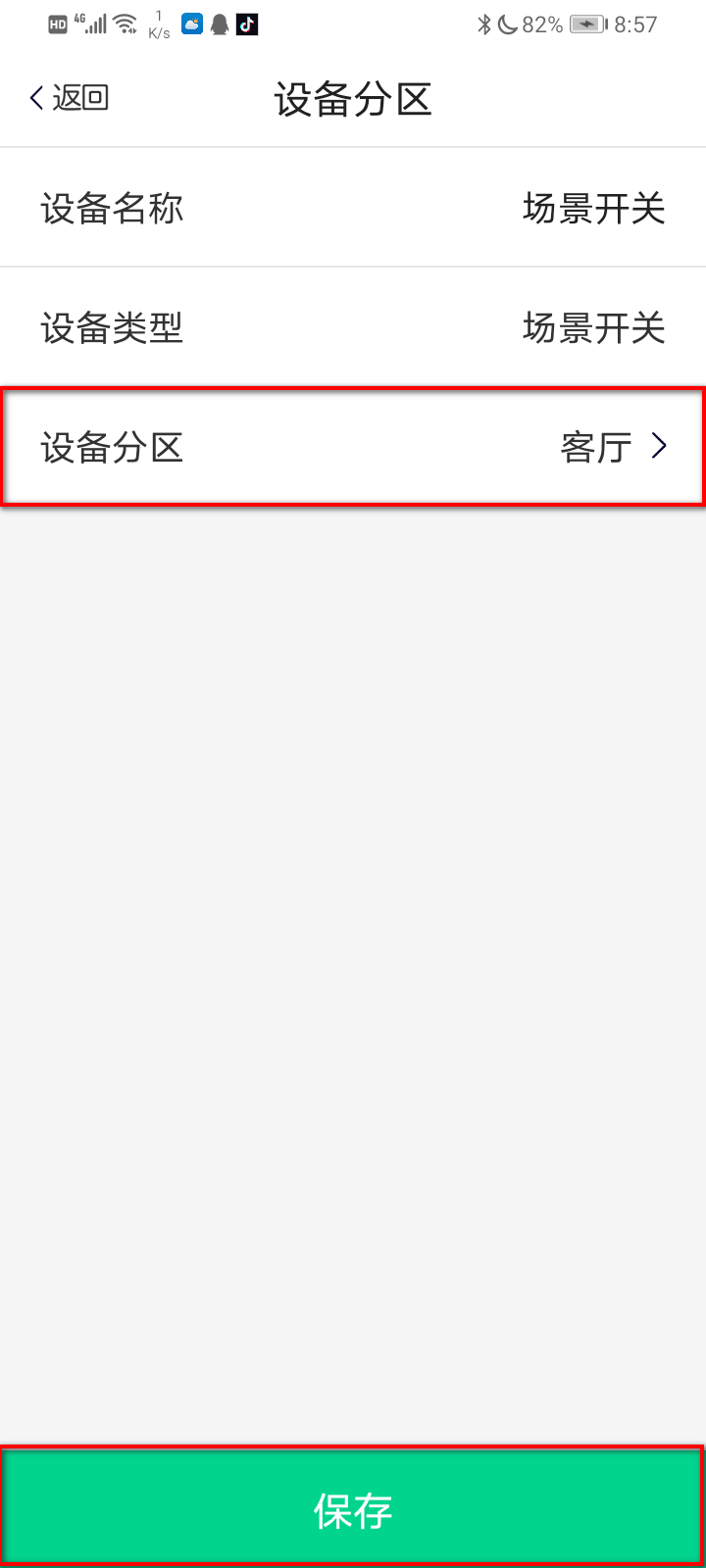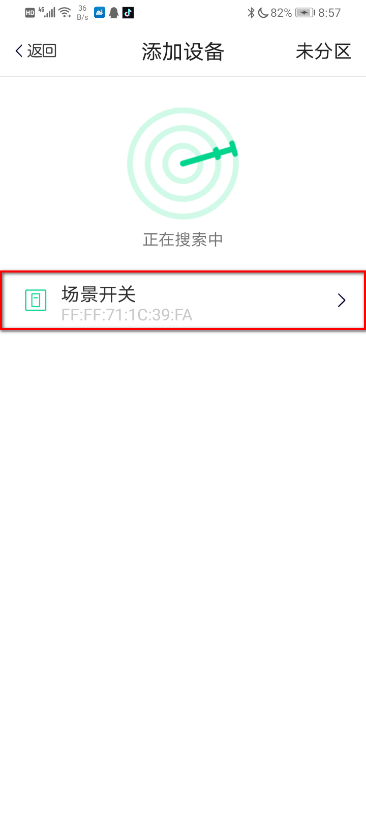 步骤4.扫描到设备后,点击设备名称-场景开关,进入设备分区界面;见下图
