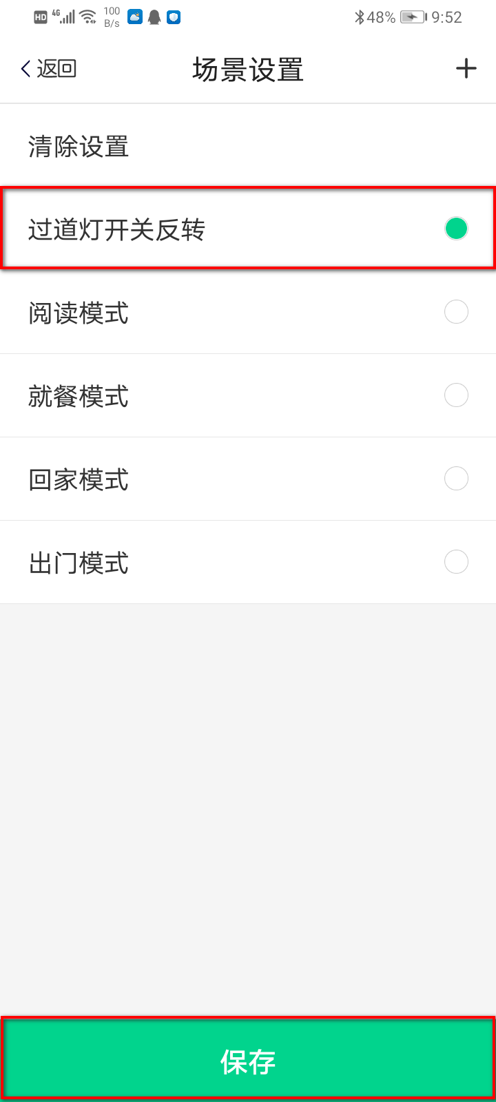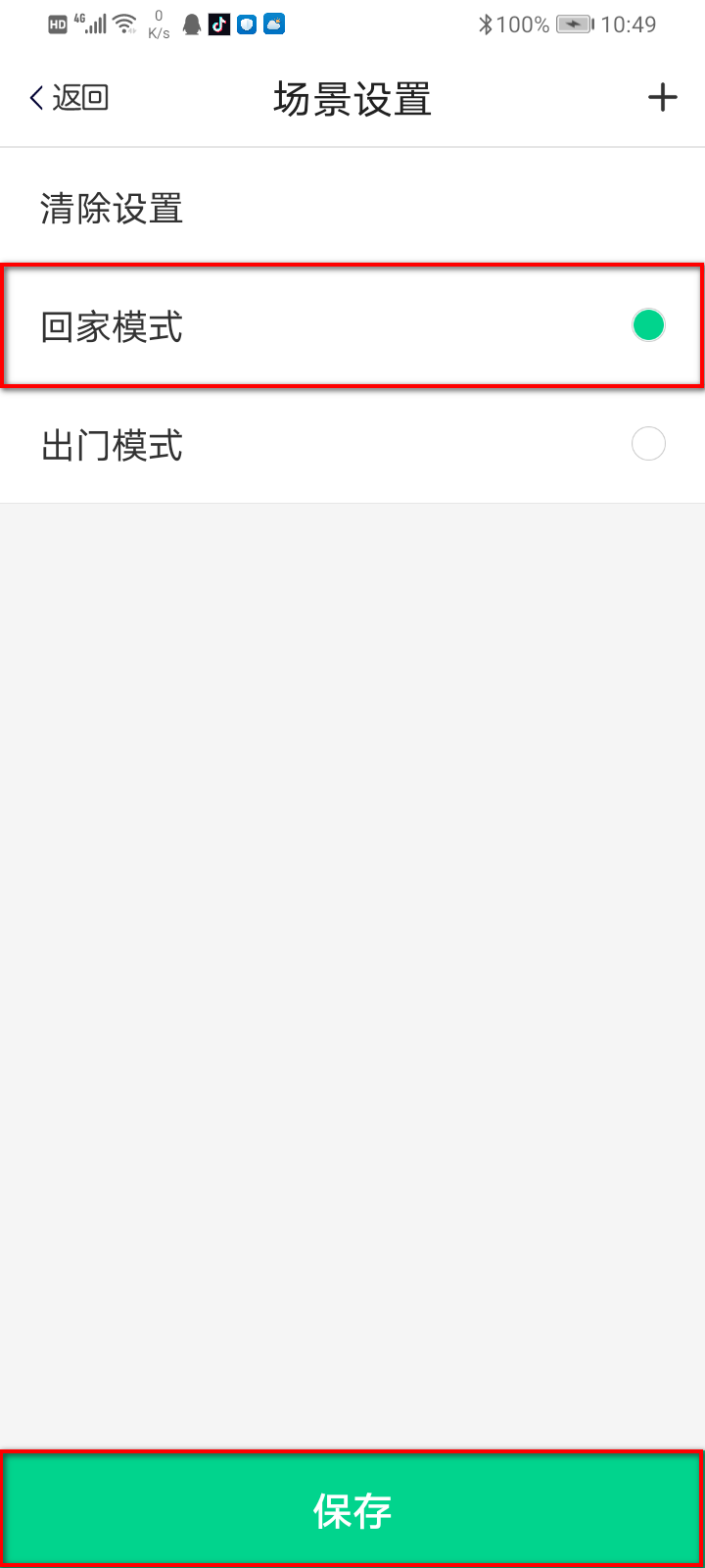 备注:设置场景后如需清除场景,点击场景设置页面的“清除设置”进行清除