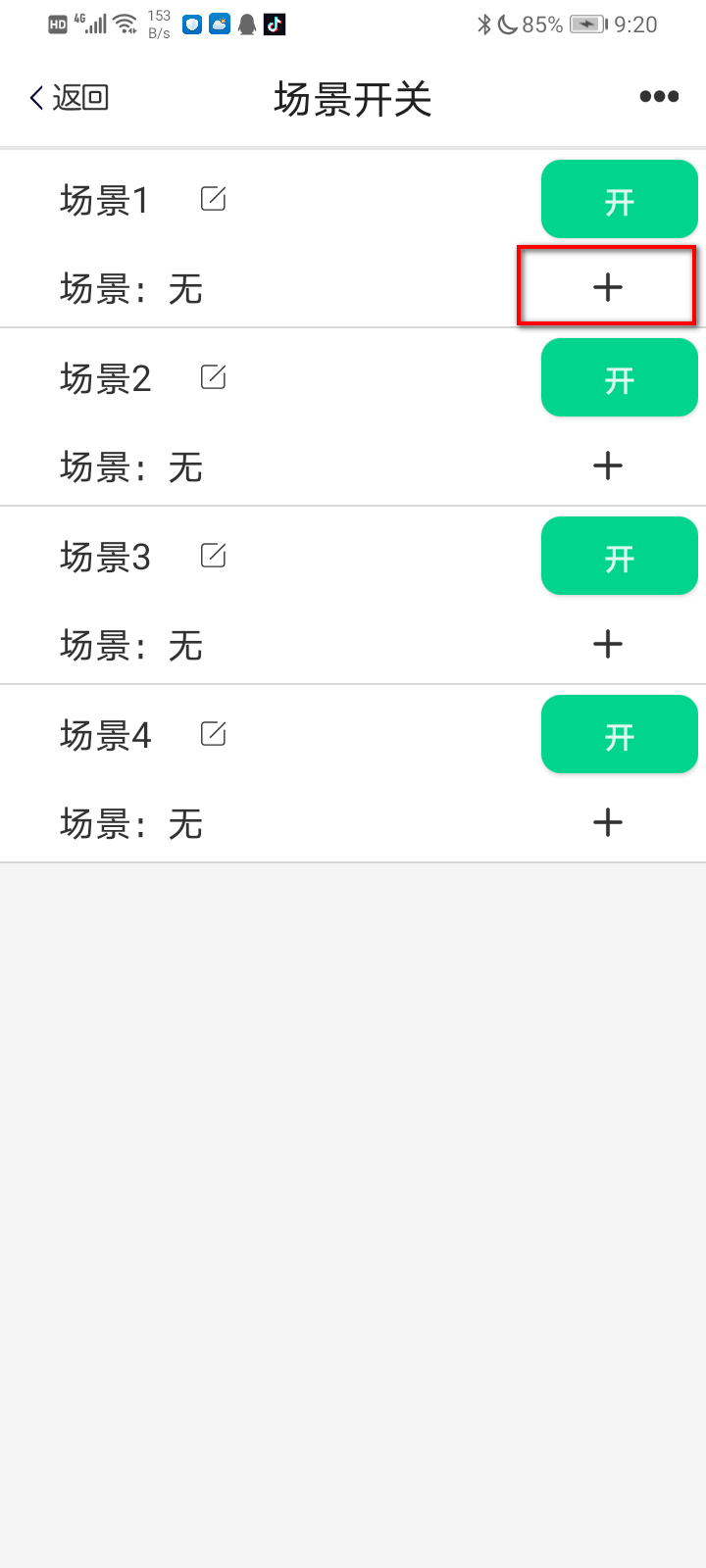 备注:创建场景也可通过场景开关场景设置界面新建,点击右上角+号,如下图