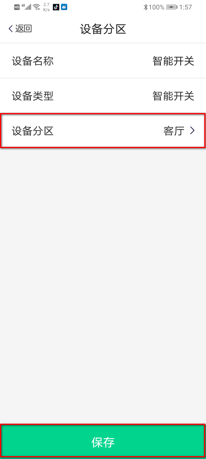 步骤4.扫描到设备后,点击设备名称-智能开关,进入设备分区界面;见下图
