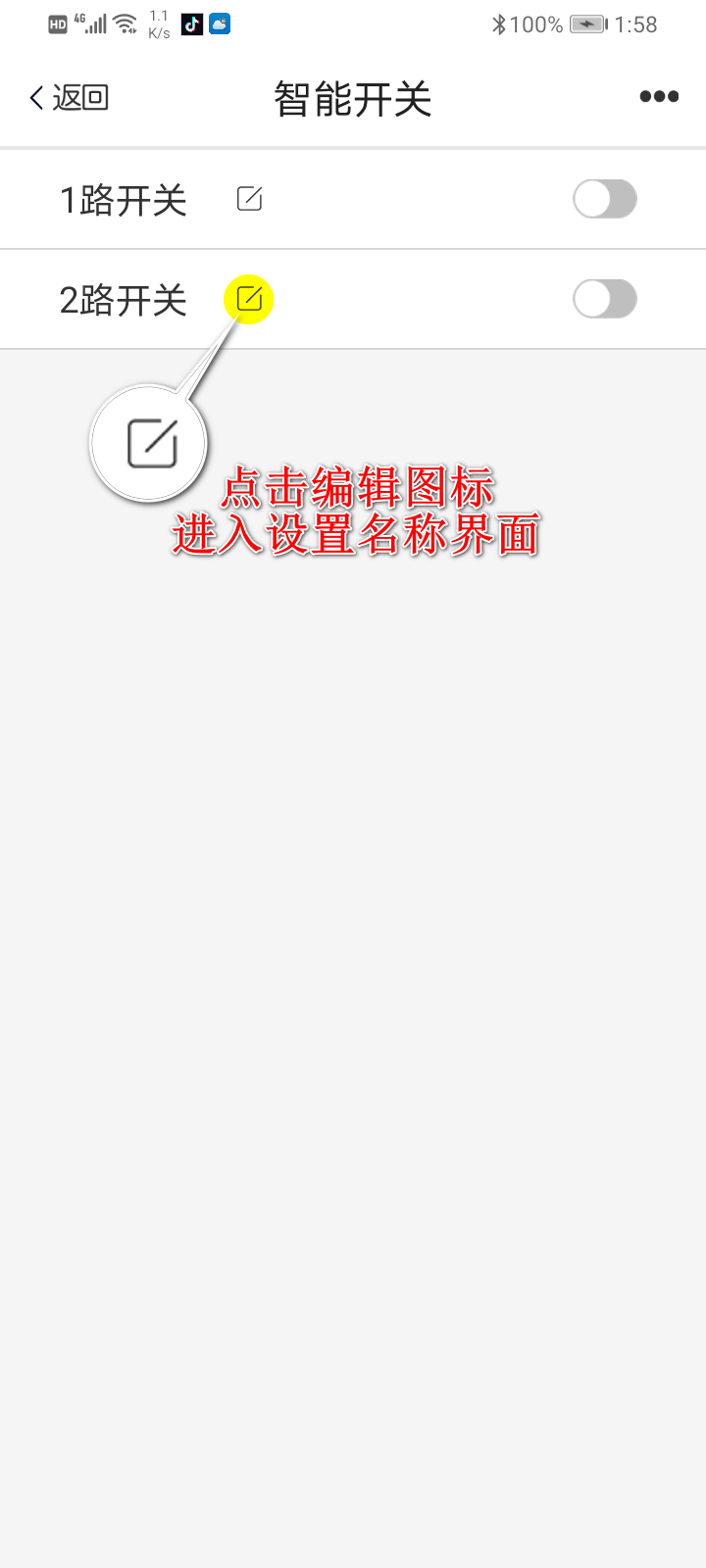 智能开关修改名称后的效果,根据开关每路控制的灯具进行命名,方便我们区分。